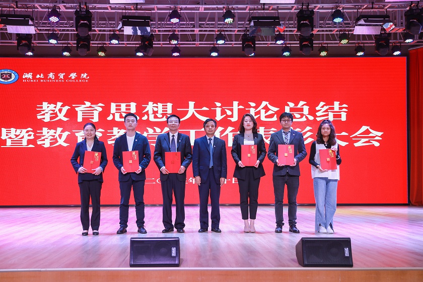 副校长徐跃进教授宣读了《关于表彰专业申报和教育教学改革工作突出贡献单位和先进个人的决定》,肖坤为获得湖北省教学成果奖的四个团队颁奖,陈卓国为在湖北省教师教学创新大赛斩获奖项的课程团队颁奖。
